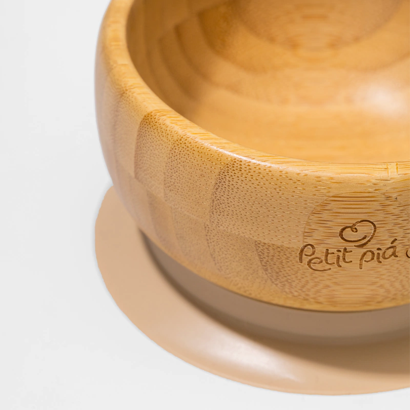O Bowl Infantil Petit Piá é confeccionado em bambu ecológico e apresenta uma ventosa antideslizante na base. Ideal para manter a estabilidade durante as refeições, o bowl combina um design moderno com funcionalidade.